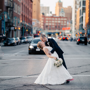 The downtown Milwaukee backdrop is breathtaking at Alexandra & Max's spring wedding. And their funfetti cake looks pretty fabulous too!